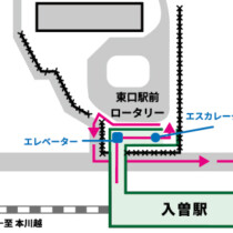 - 県道8号線を入間に向かい→入曽交差点の次を左→次の交差点を右→入曽駅東口を通過し、一つ目の角を左